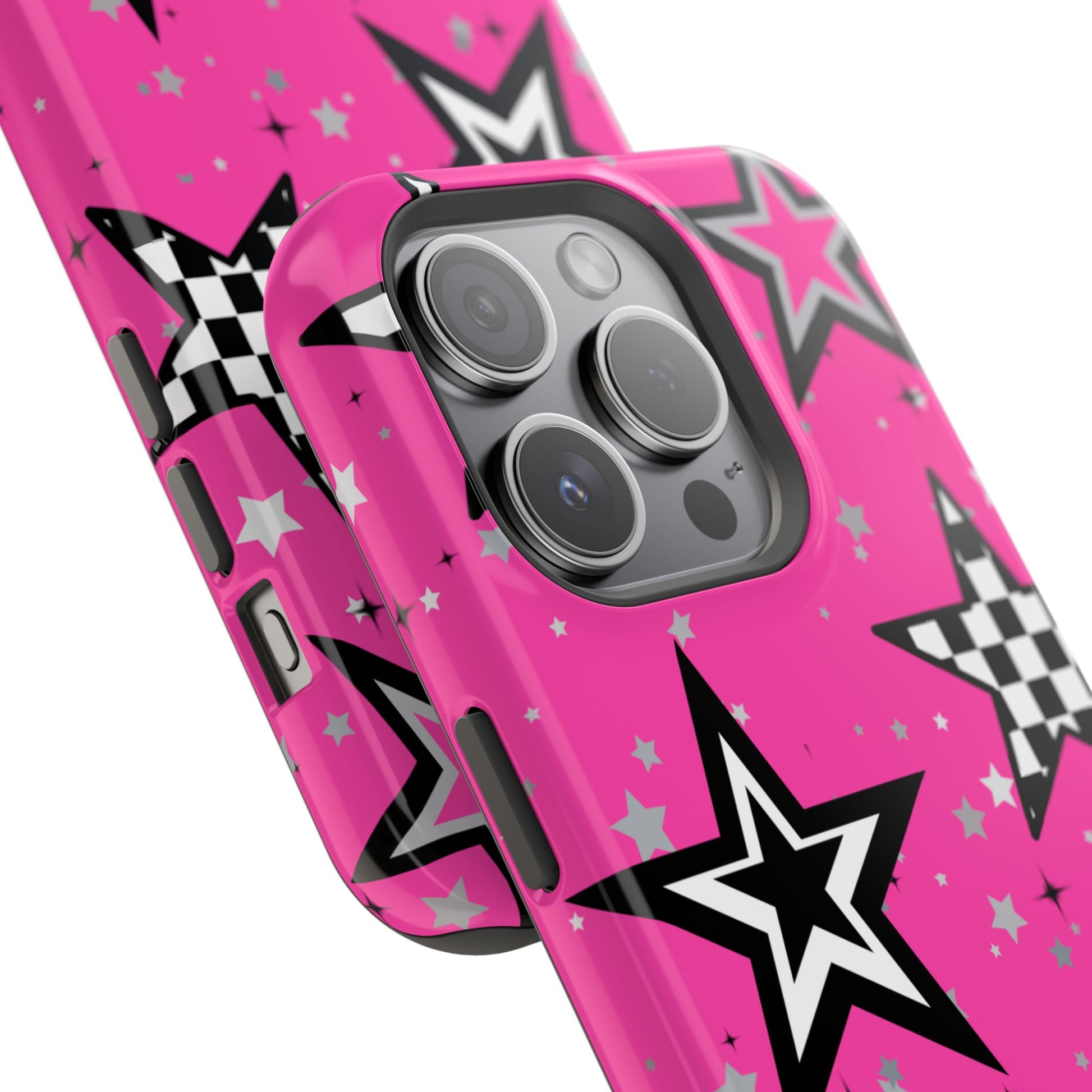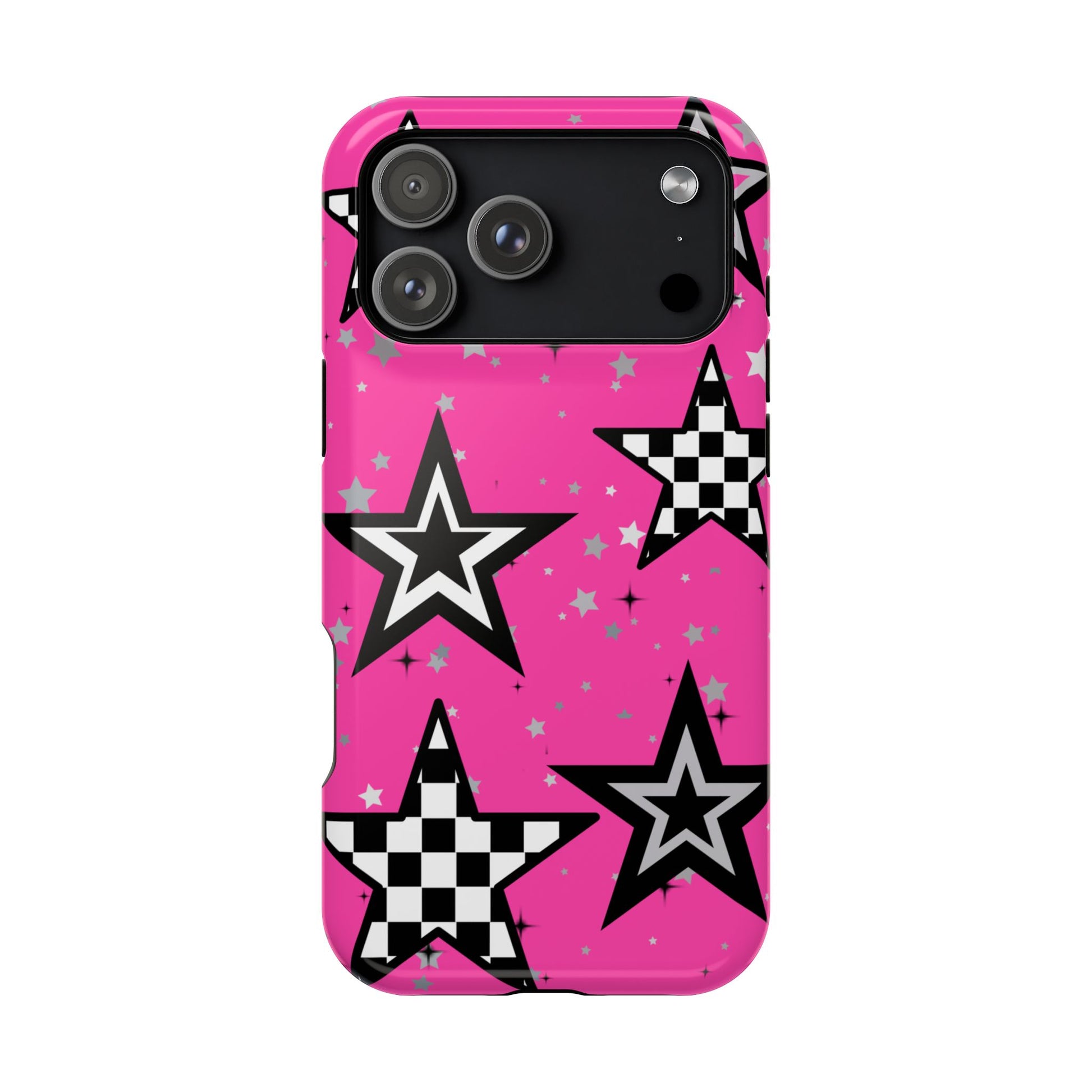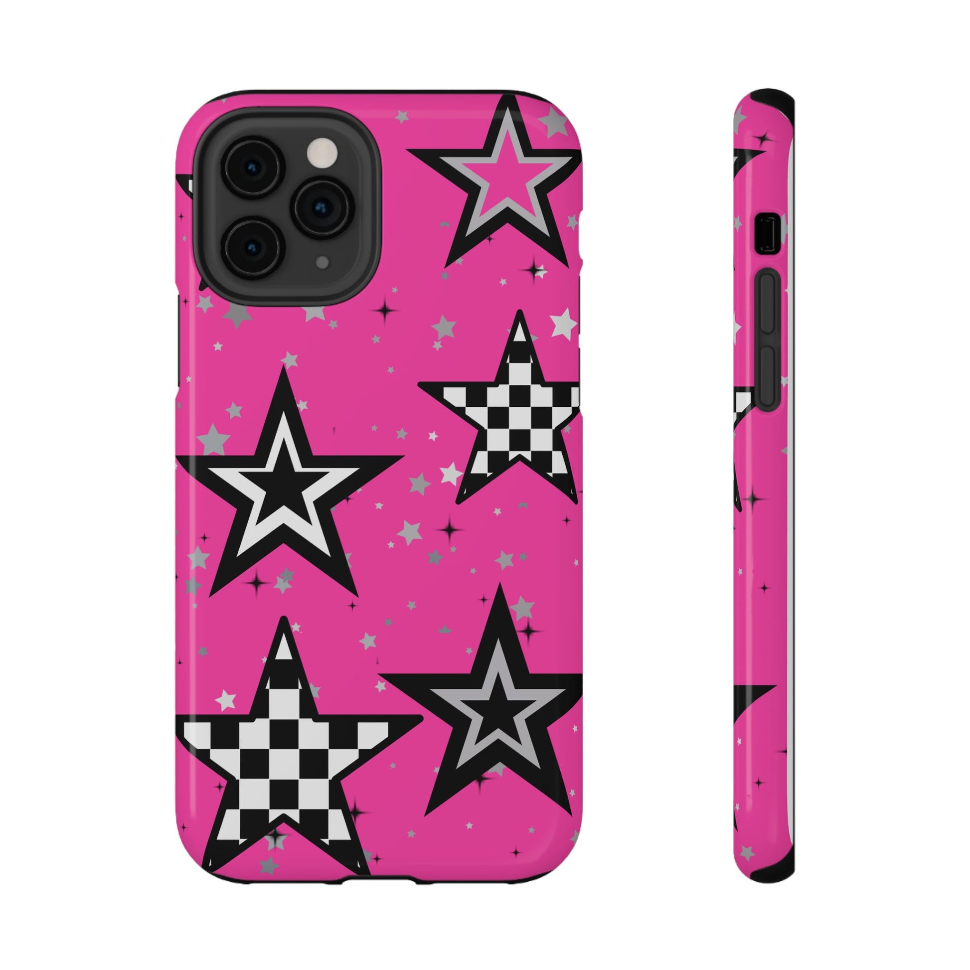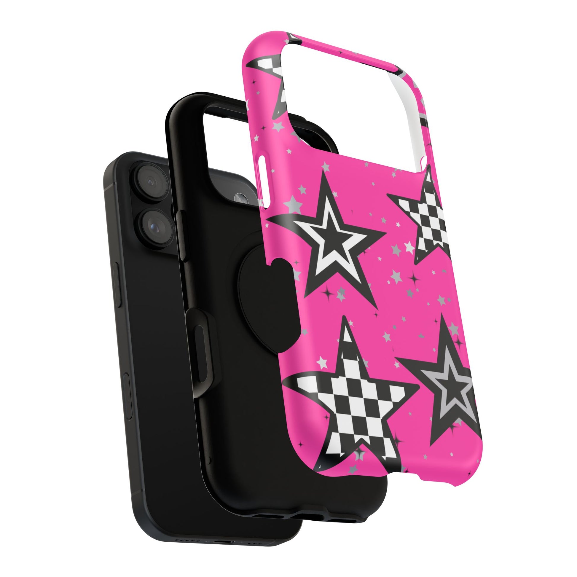 Starry Pink Impact-Resistant Case, Bold Phone Cover, Trendy Tech Accessory, Star, Gifts for Occasions, Phone Case, Iphone