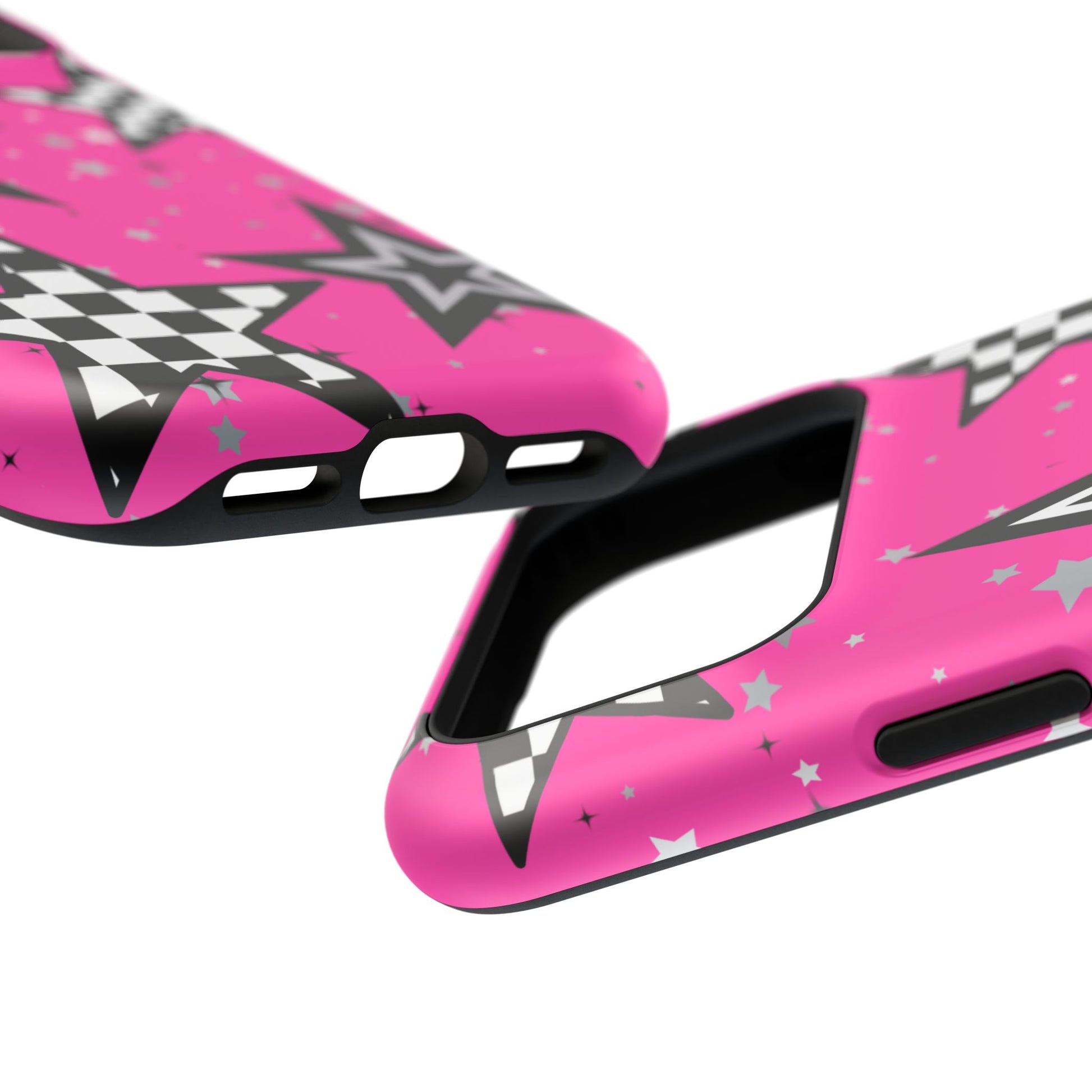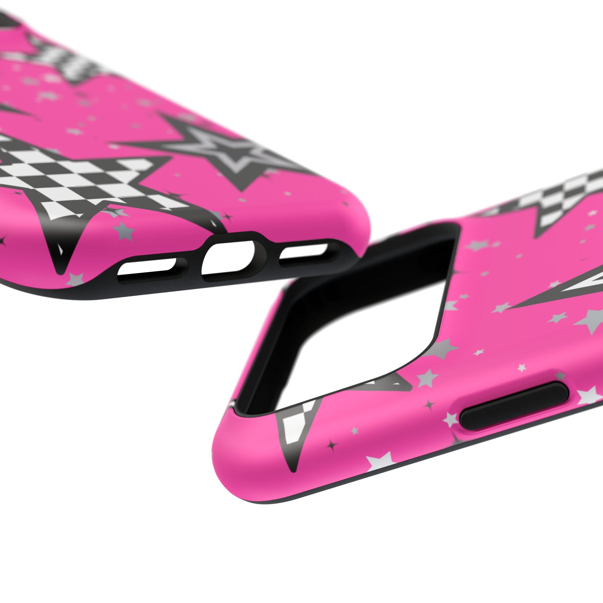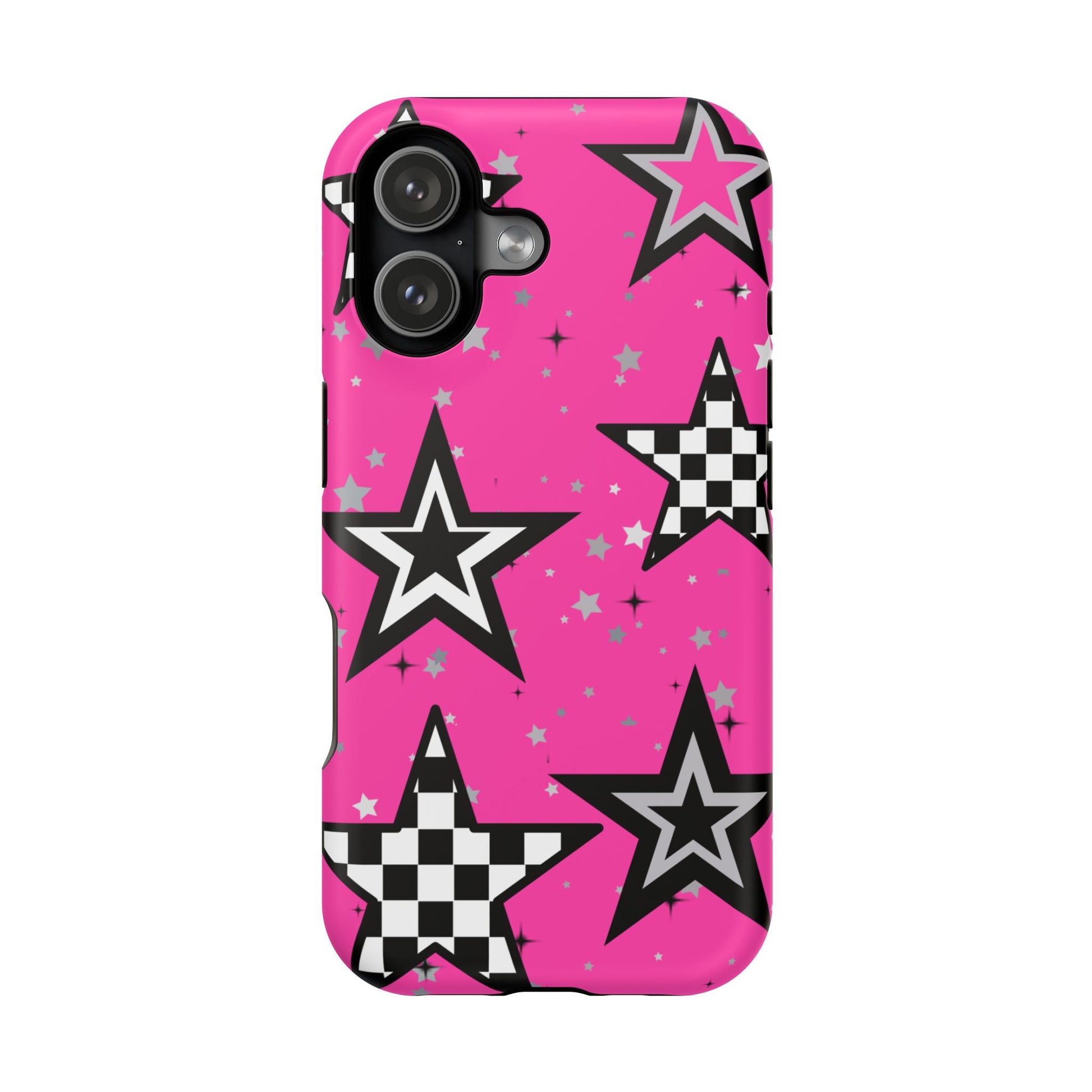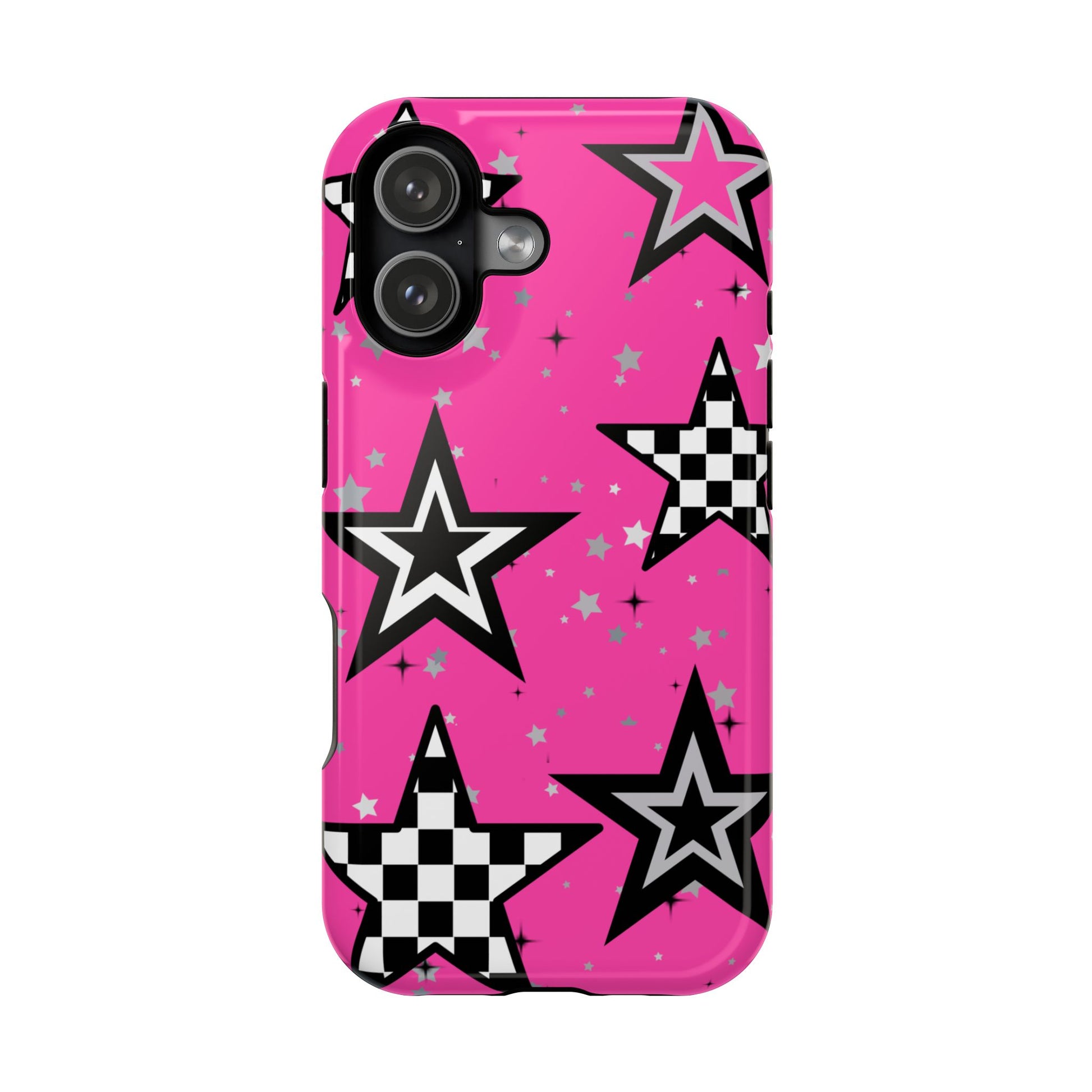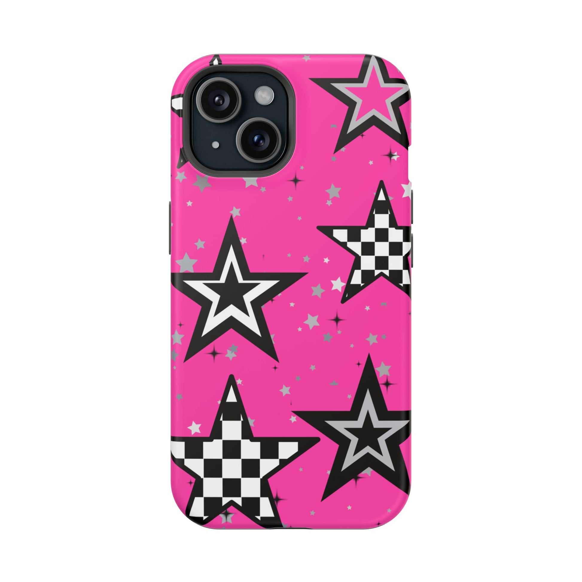 Starry Pink Impact-Resistant Case, Bold Phone Cover, Trendy Tech Accessory, Star, Gifts for Occasions, Phone Case, Iphone