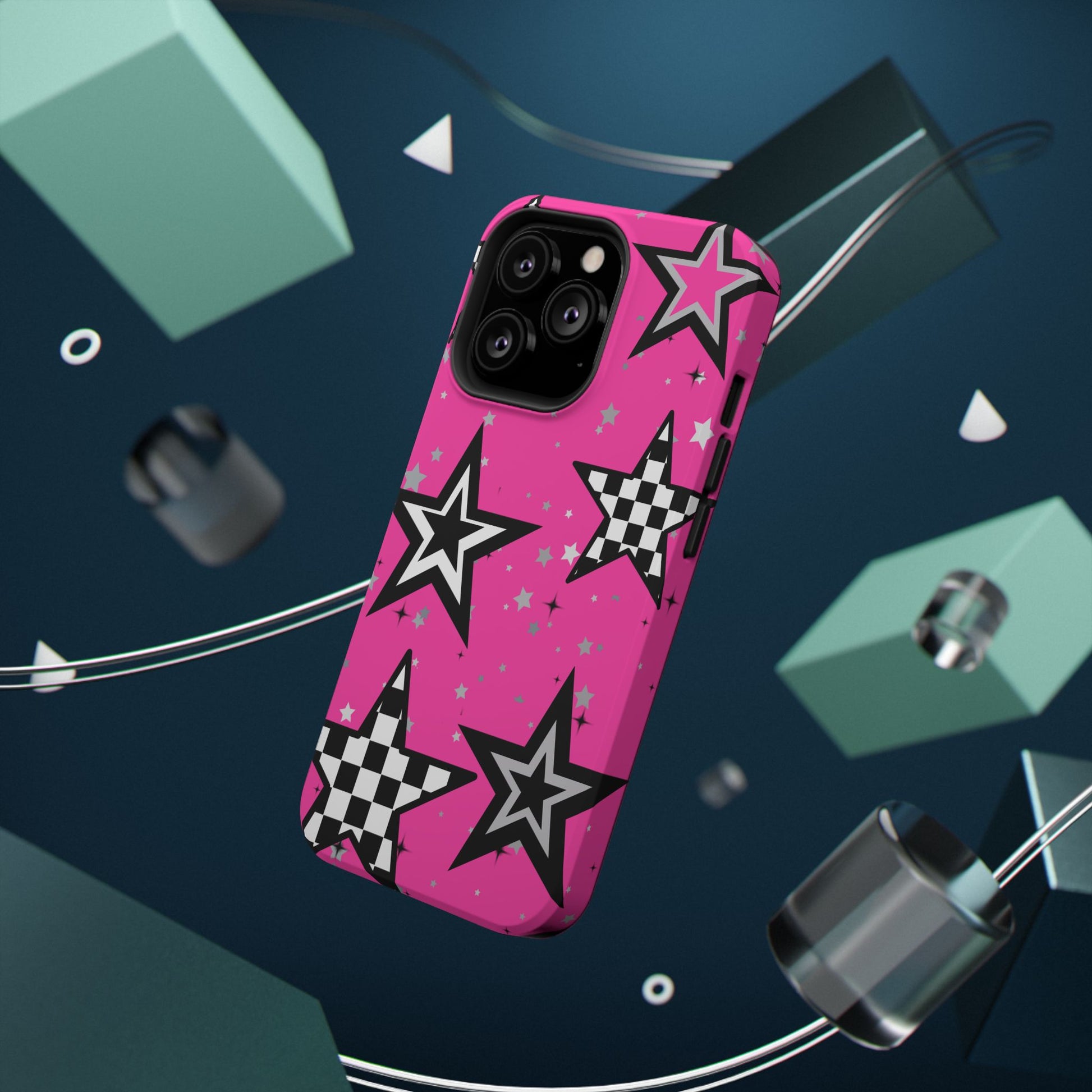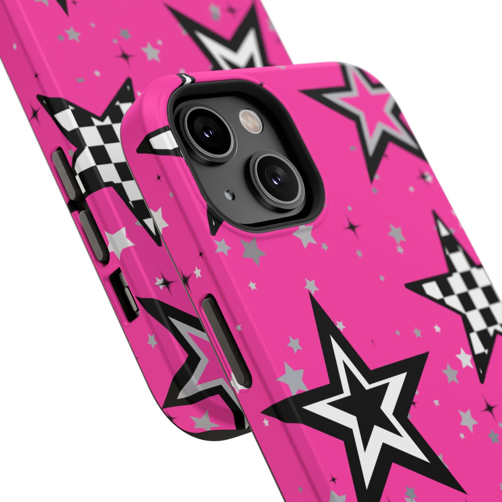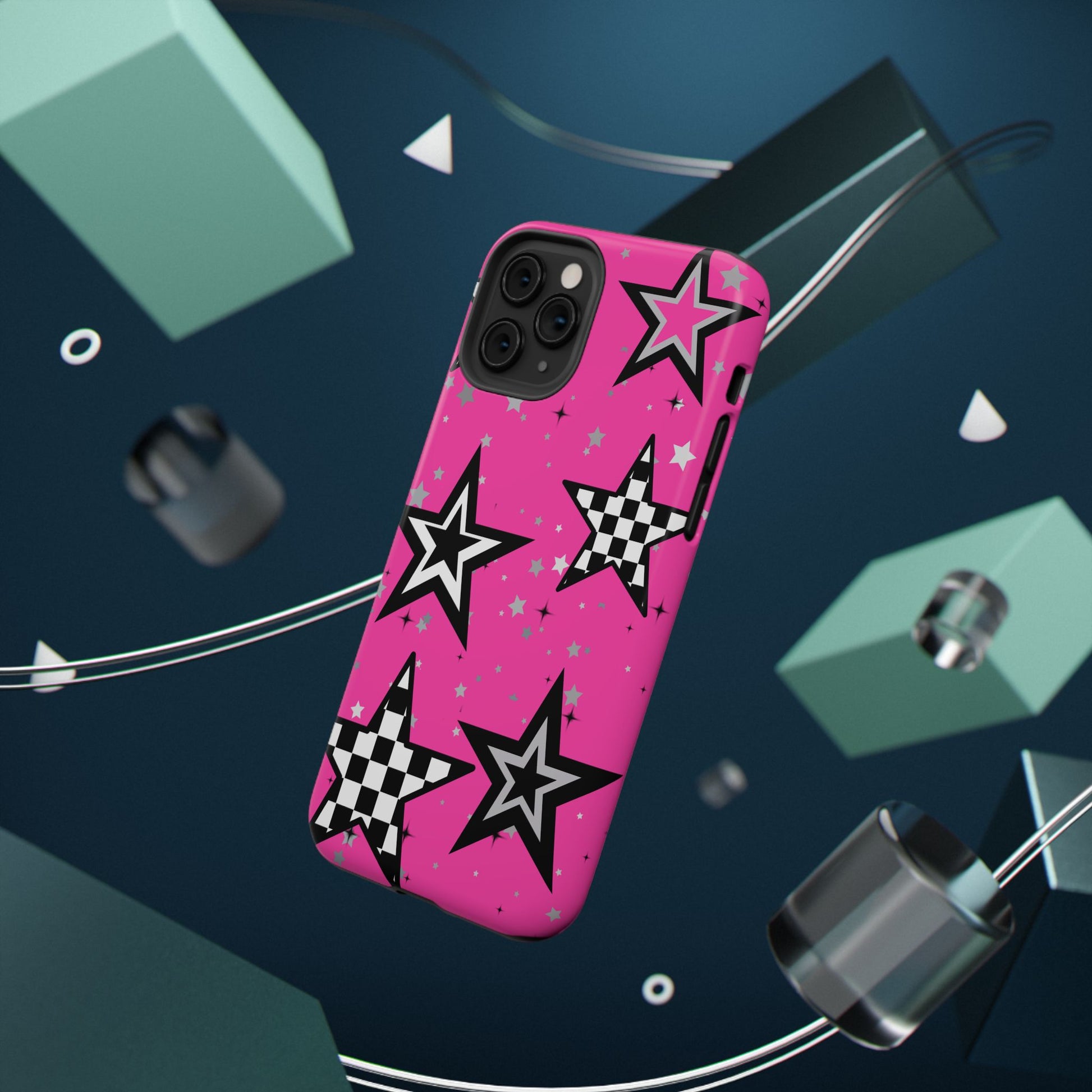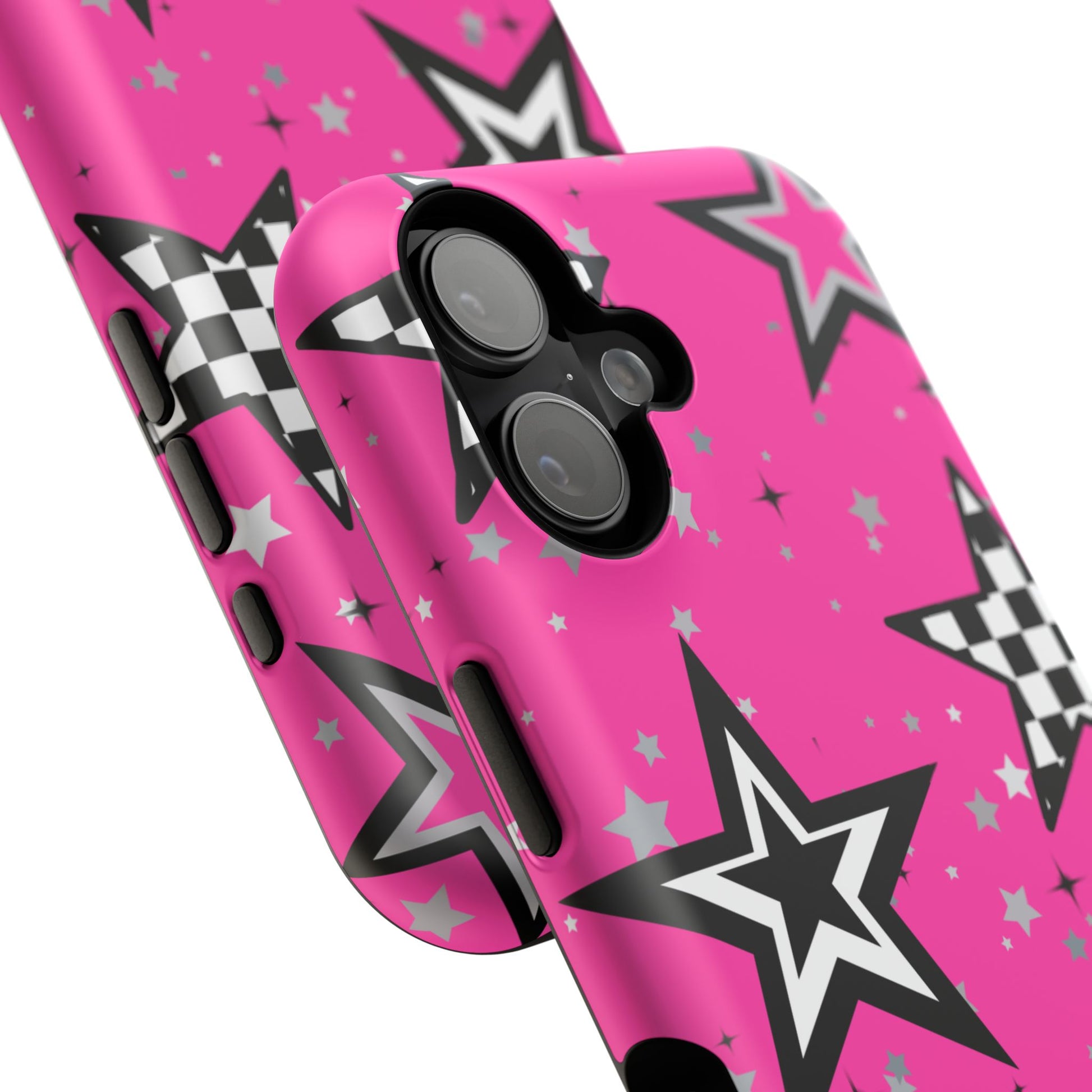 Elevate your style with this eye-catching phone case, designed to add a splash of fun and personality to your device. The vibrant stars and checkerboard print create a playful vibe, perfect for expressing your unique flair. Whether you're out on the town, attending a concert, or just hanging out with friends, this durable case is a must-have accessory. Ideal for those who love bold designs and want to protect their phone in style. This phone case makes a thoughtful gift for birthdays or special occasions and is perfect for anyone who wants to stand out from the crowd. Celebrate individuality and creativity with a piece that’s suitable for all ages!