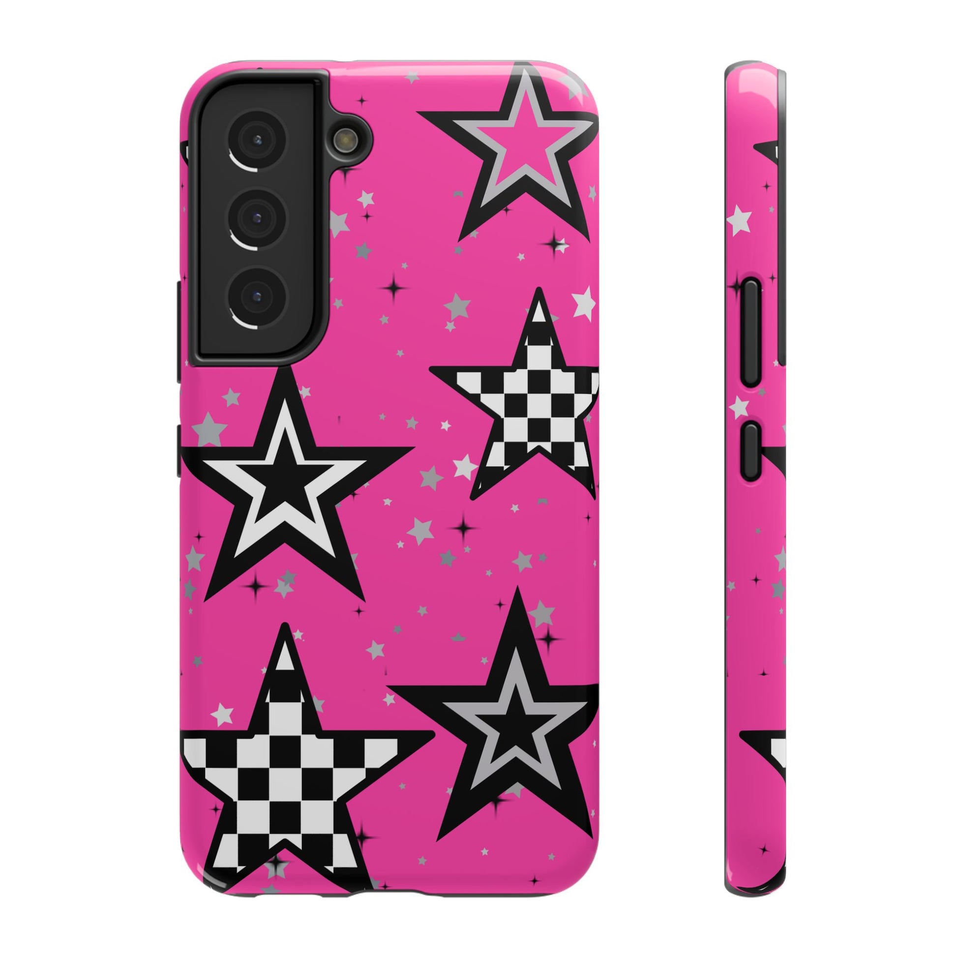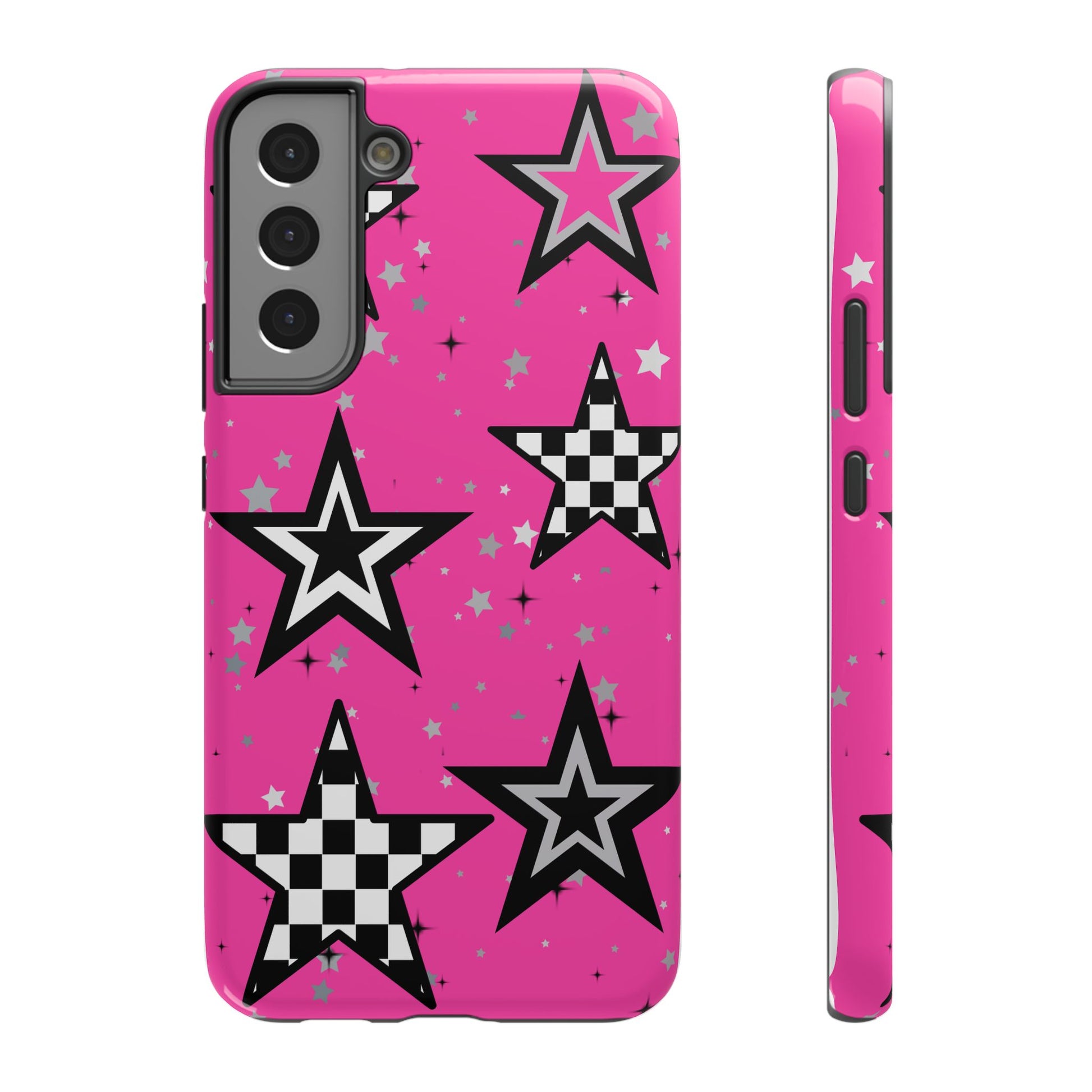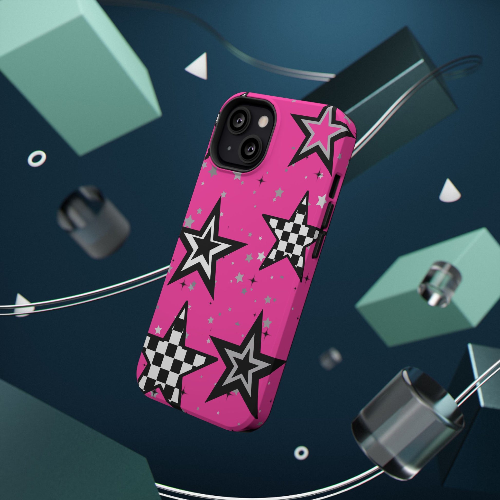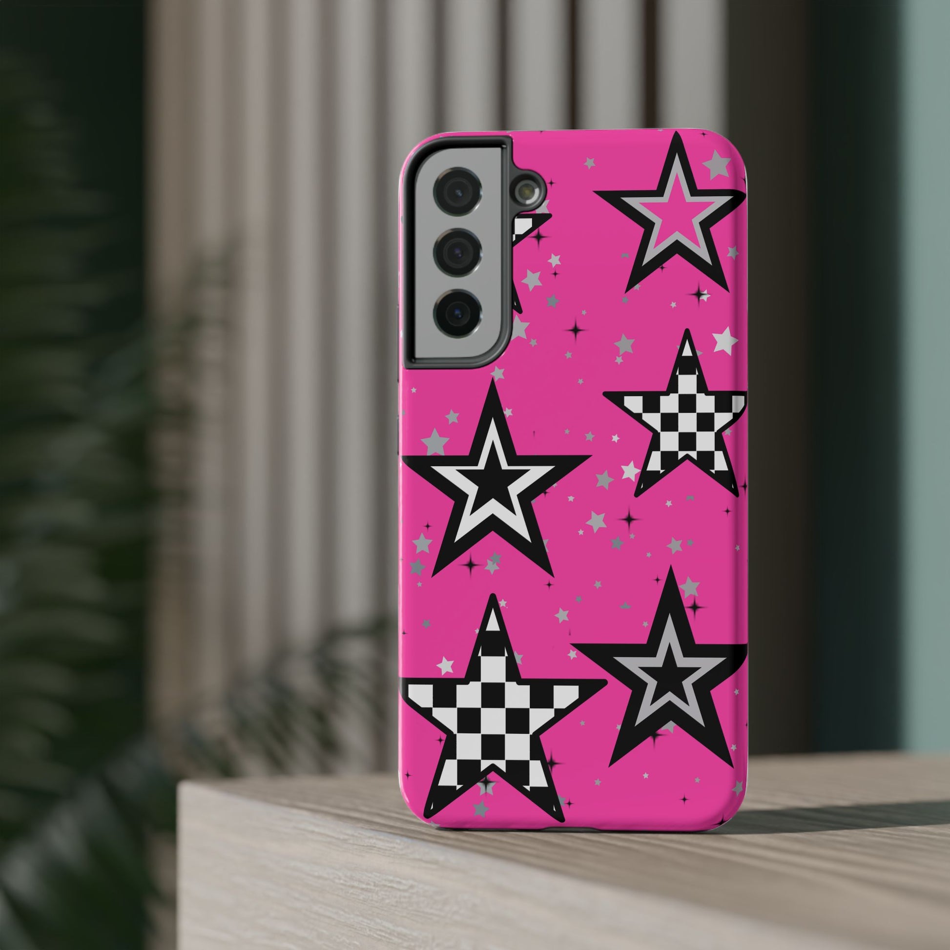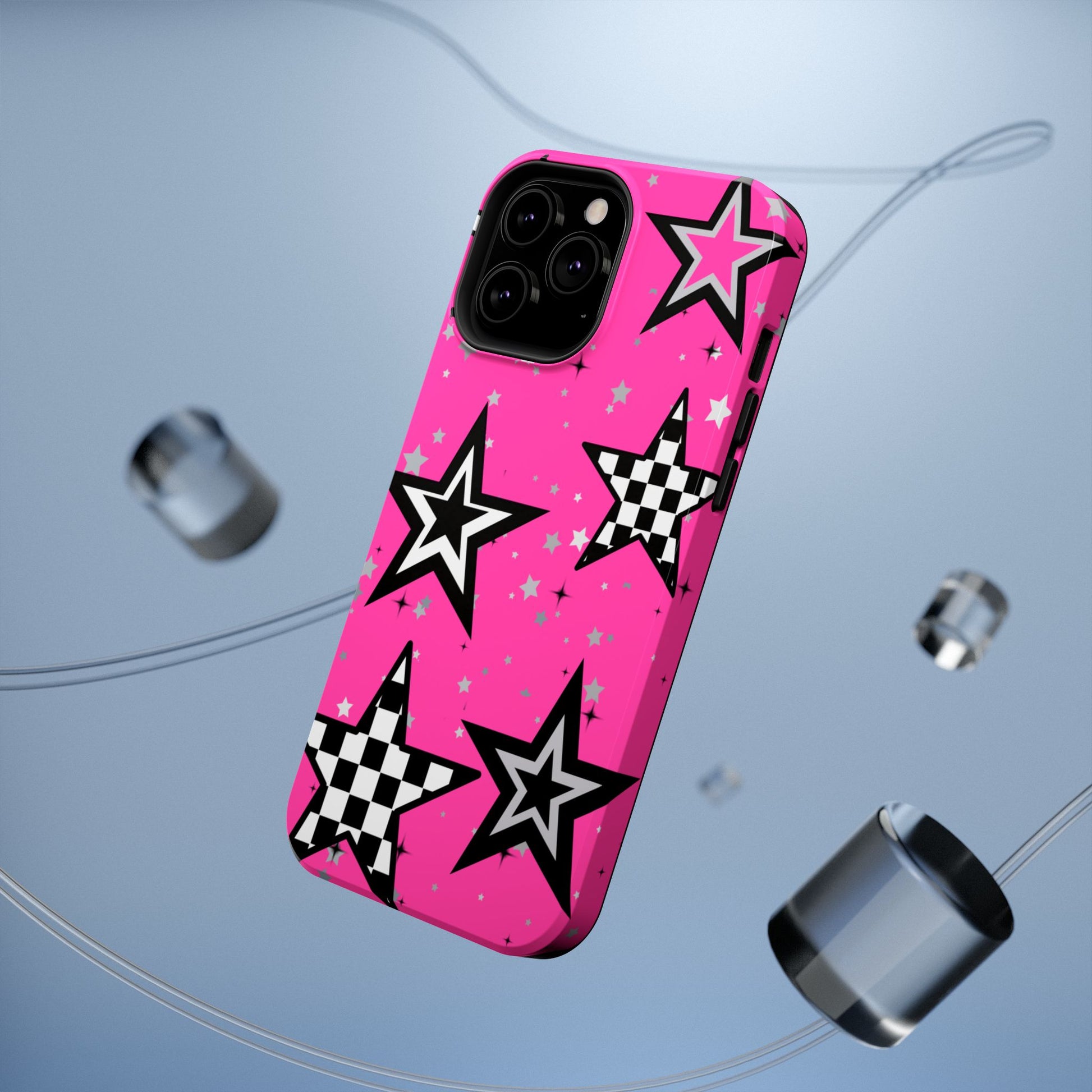 Elevate your style with this eye-catching phone case, designed to add a splash of fun and personality to your device. The vibrant stars and checkerboard print create a playful vibe, perfect for expressing your unique flair. Whether you're out on the town, attending a concert, or just hanging out with friends, this durable case is a must-have accessory. Ideal for those who love bold designs and want to protect their phone in style. This phone case makes a thoughtful gift for birthdays or special occasions and is perfect for anyone who wants to stand out from the crowd. Celebrate individuality and creativity with a piece that’s suitable for all ages!