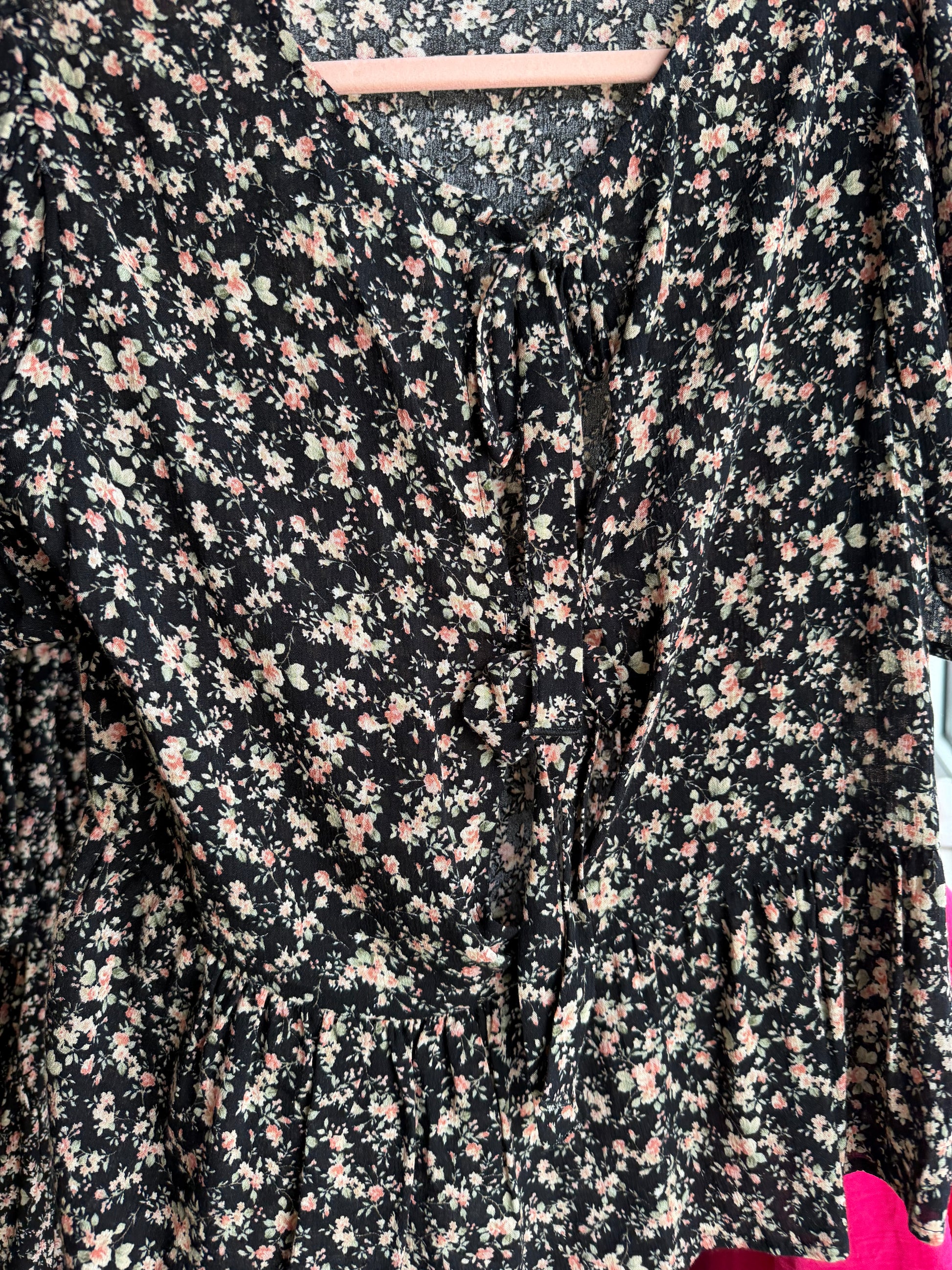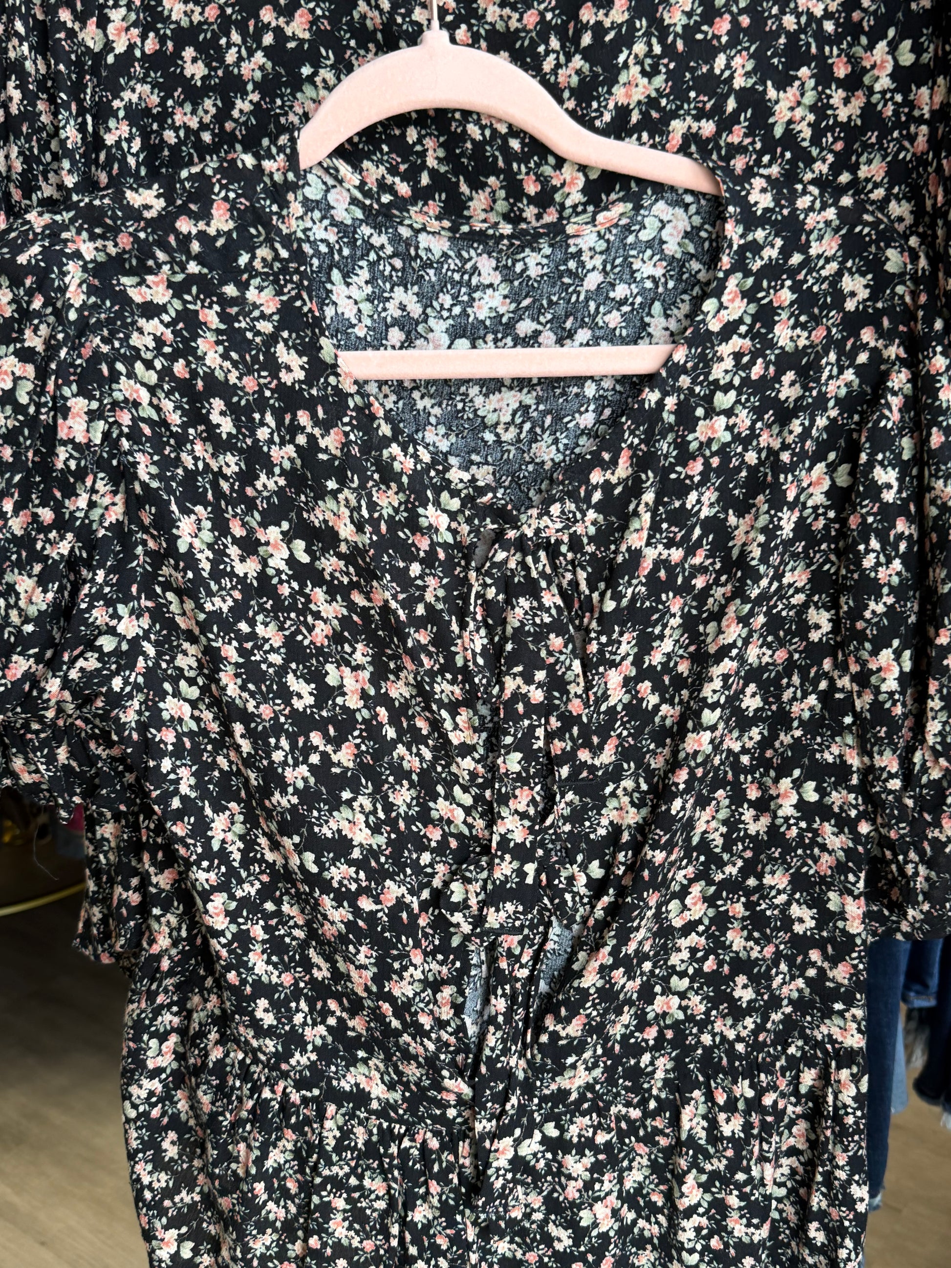 Black Floral 3 Tie Top